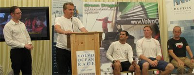 Just back from a fascinating lecture on "Broadcasting the Volvo Ocean Race' in the race village, where media crew members Anton Paz (TELFONICA BLACK), Gustav Morin (ERICCSSON 3) and Rick Deppe (PUMA) spoke of their experiences filming using high-definition television, on their respective boats. Climbing up the mast, getting hit at 30 knots by waves, and sitting on the bow crashing up and down were all in a day's work. All the while, these media crew members kept a plan or theme in mind and looked for stories and action to document on film or to blog and podcast. Then, below deck, it was time for digitising, compressing, editing and then uploading via the Inmarsat system via satellite, followed by a few snatched hours sleep before doing it all again. This all took place under conditions of keeping electricity usage low (running off disel on these weight conscious boats) and stopping cables and wires from corroding with salty water. Heroic tales!